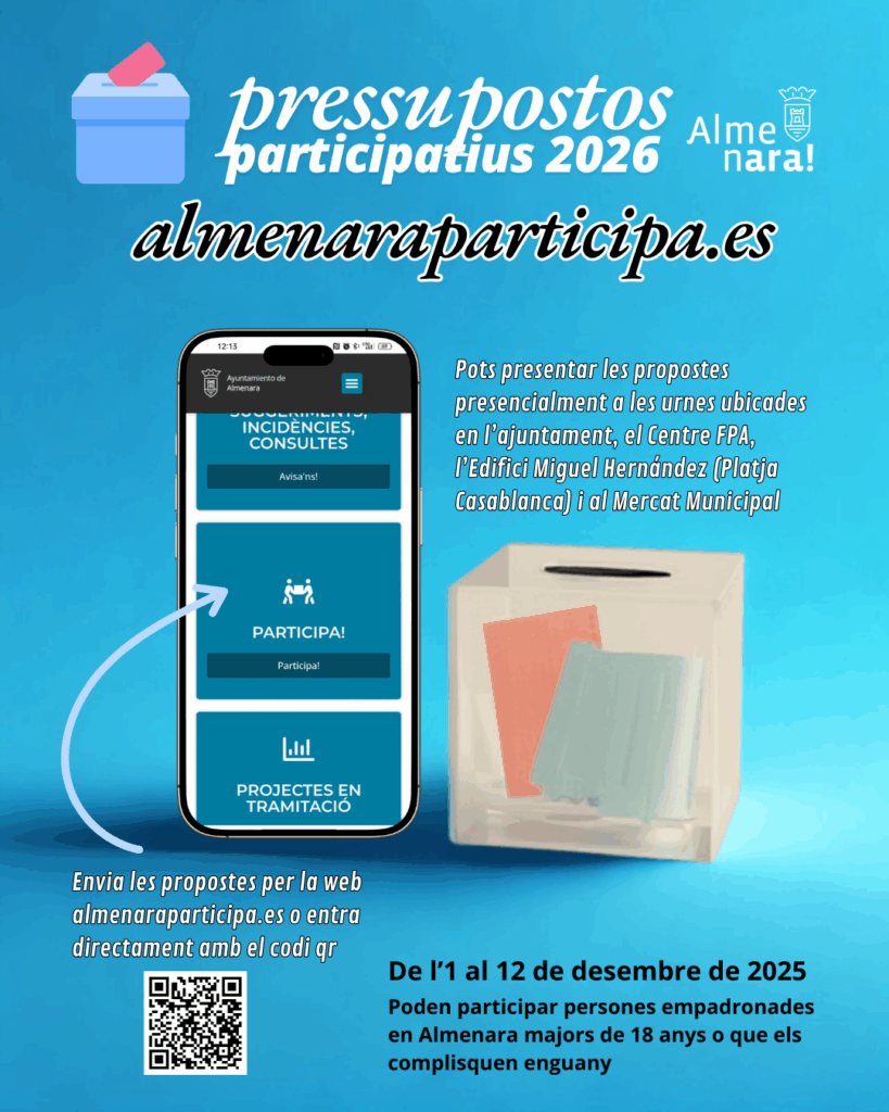 Almenara activa la tercera edició dels Pressupostos Participatius per a elaborar els comptes municipals de 2026