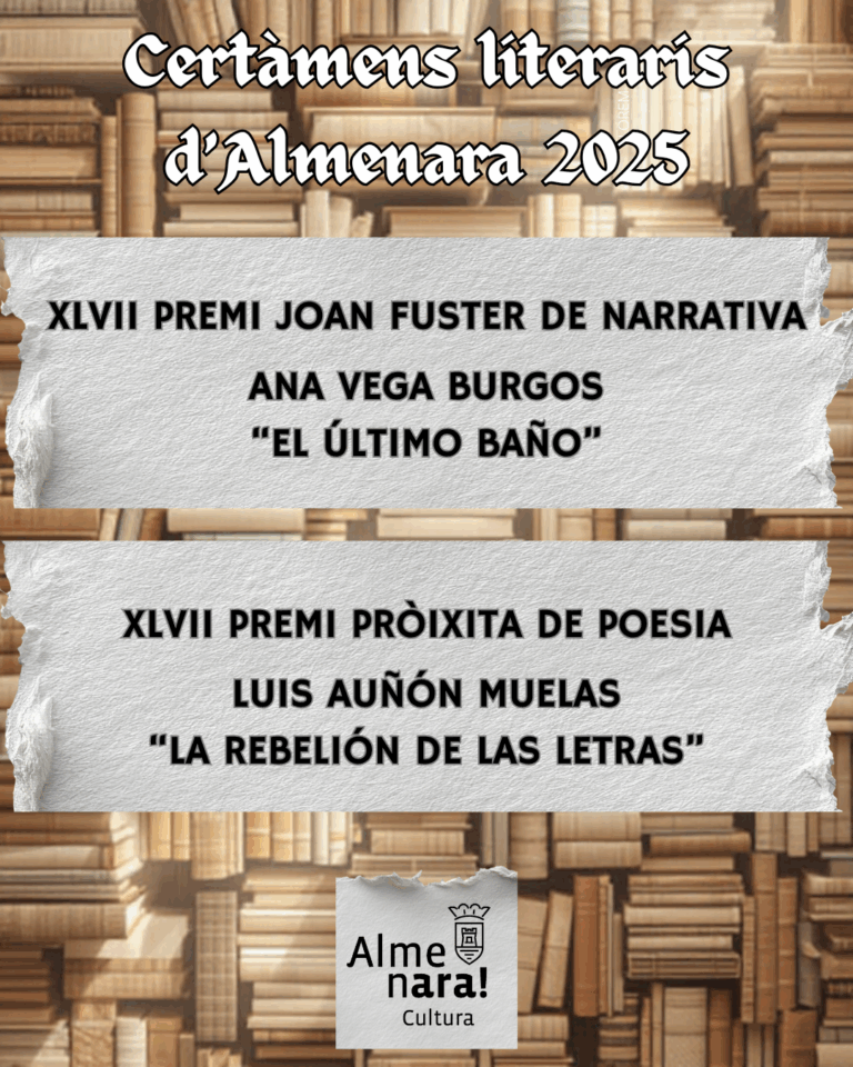 L’Ajuntament d’Almenara, a través de la Regidoria de Cultura, ha donat a conéixer els autors i obres guardonades en els Certàmens Literaris d’Almenara 2025, uns premis consolidats que cada any reconeixen la creativitat i el talent literari en narrativa i poesia.