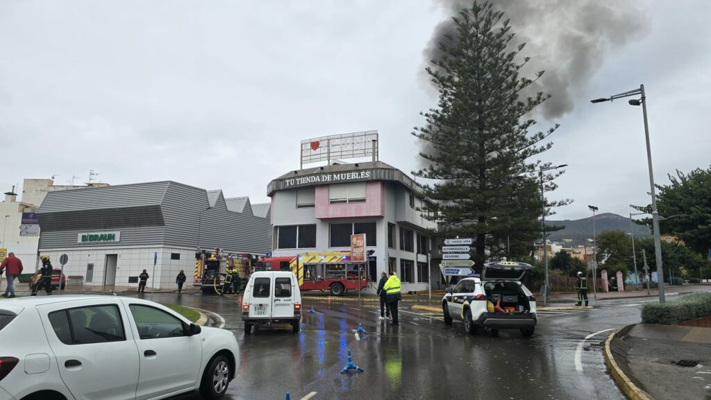 Incendi en una tenda de mobles a l’entrada de la Vall d’Uixó