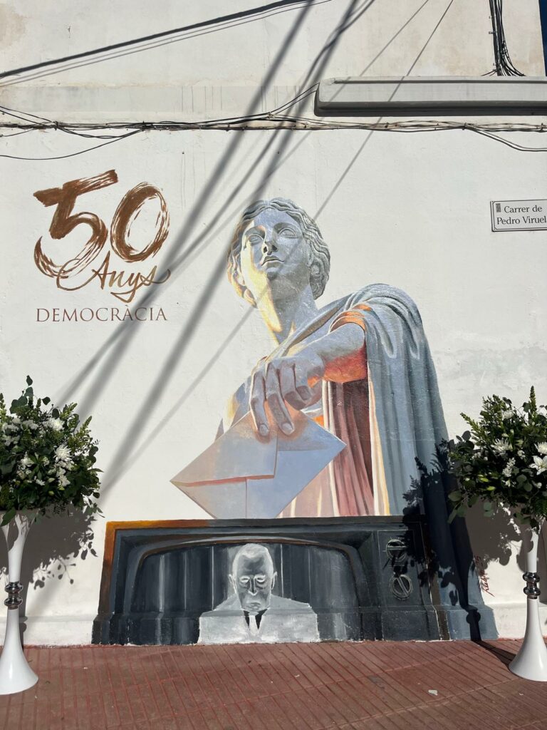 La Vall d’Uixó ha celebrat este matí l’acte oficial de presentació del mural commemoratiu dels 50 anys de la democràcia a Espanya, una iniciativa impulsada en el marc del programa estatal 50 anys en llibertat del Govern d’Espanya. L’acte ha tingut lloc a l’encreuament de l’avinguda Cor de Jesús amb el carrer Pedro Viruela, davant del Jutjat de Pau, on a finals de 2025 es va pintar este mural, amb l’impuls de la Subdelegació del Govern a Castelló.